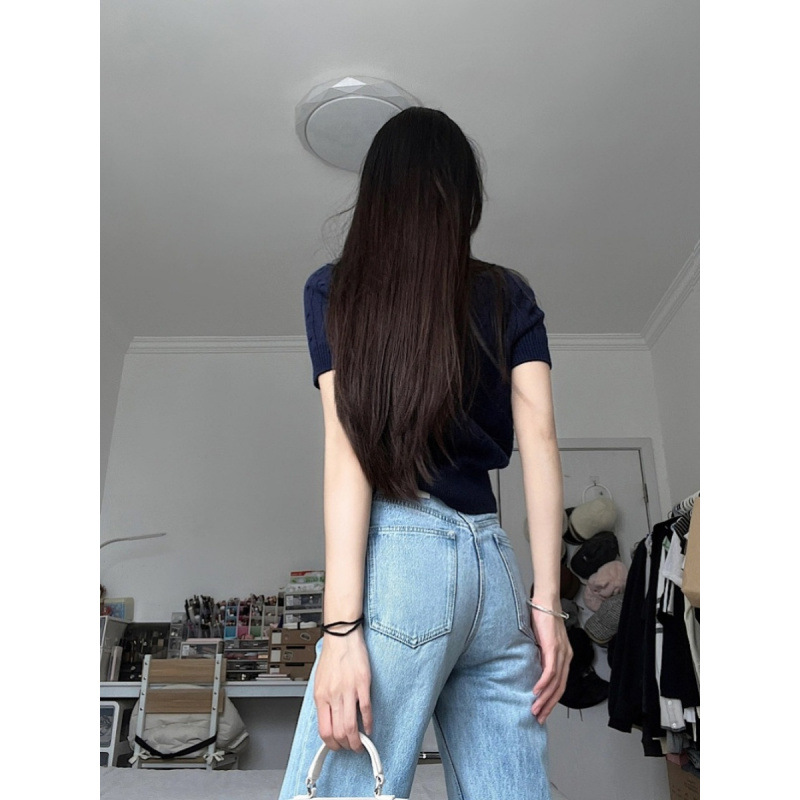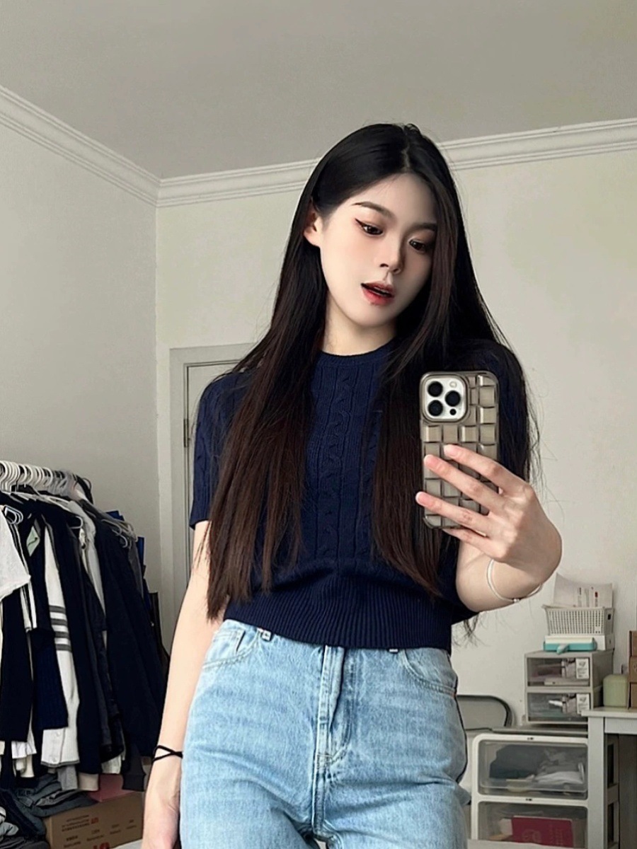 Retro Cable-Knit Crew-Neck Short-Sleeve Knit T-Shirt For Summer