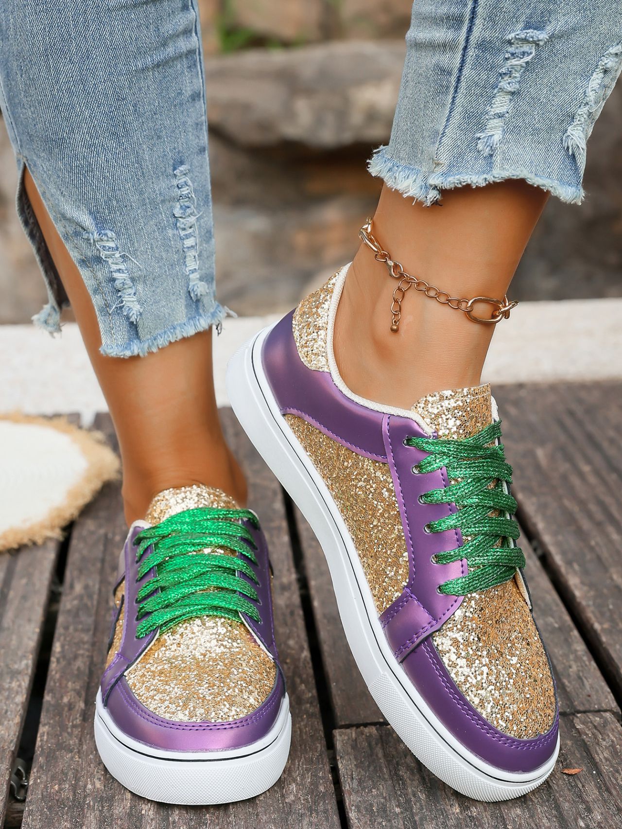 Stylish Flat Chunky-sole Low-top Shoes With Sequins And Lace-up Design
