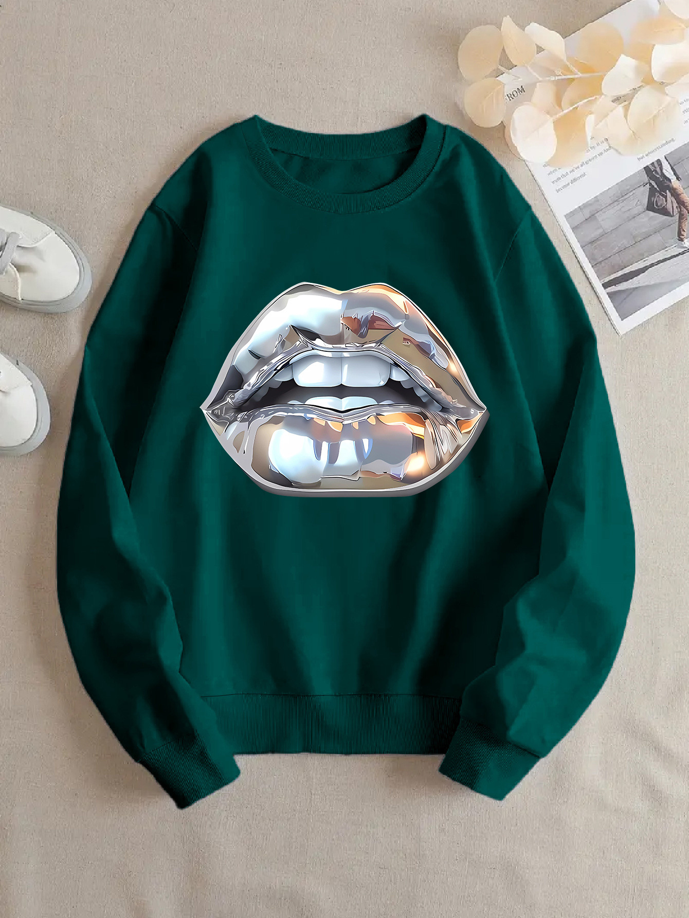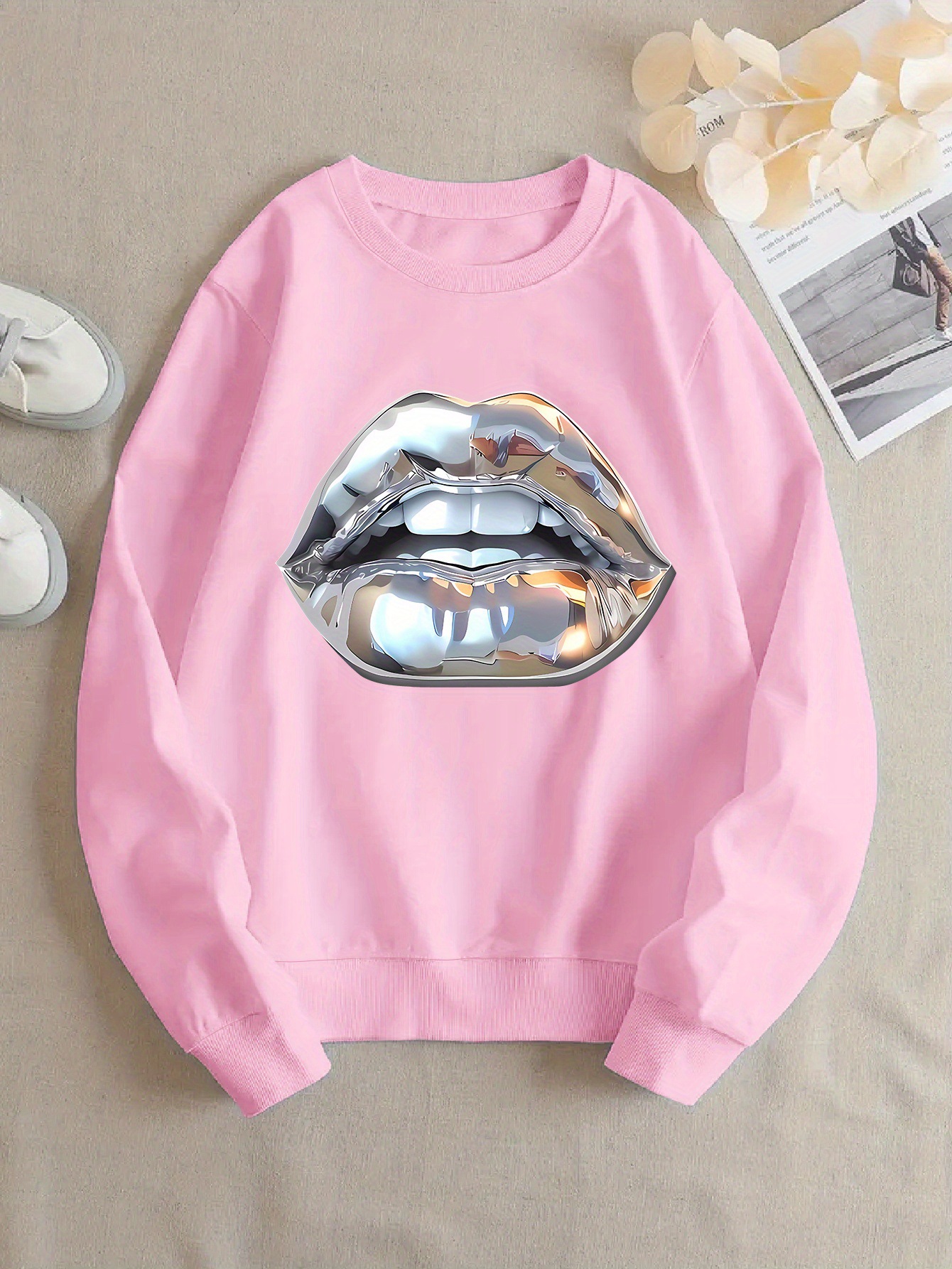 Womens Cartoon Silver Lip-Printed Sweatshirt